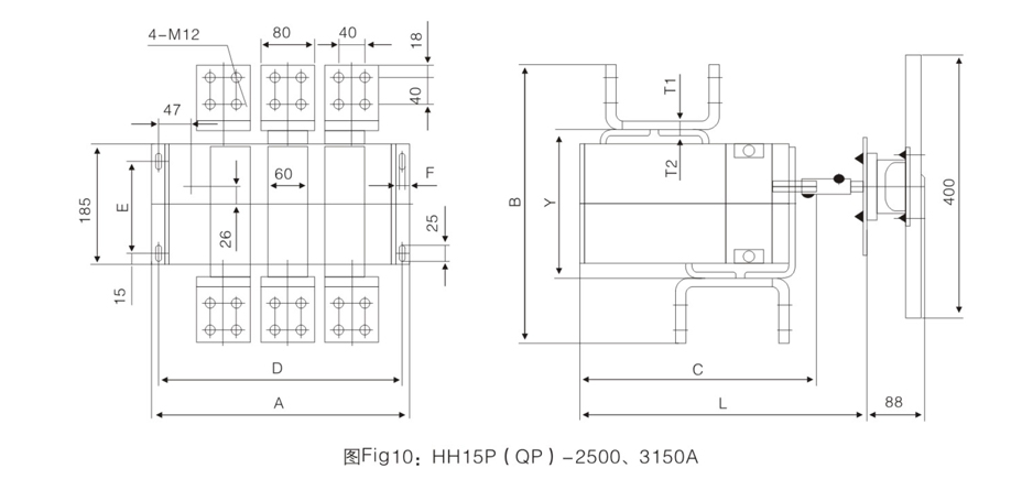 HH15P(QP)-2500~3150A的外形与安装尺寸