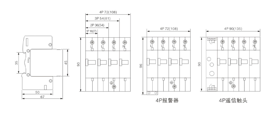 按极数可分为:1P、1P+N、2P、3P、3P+N、4P
